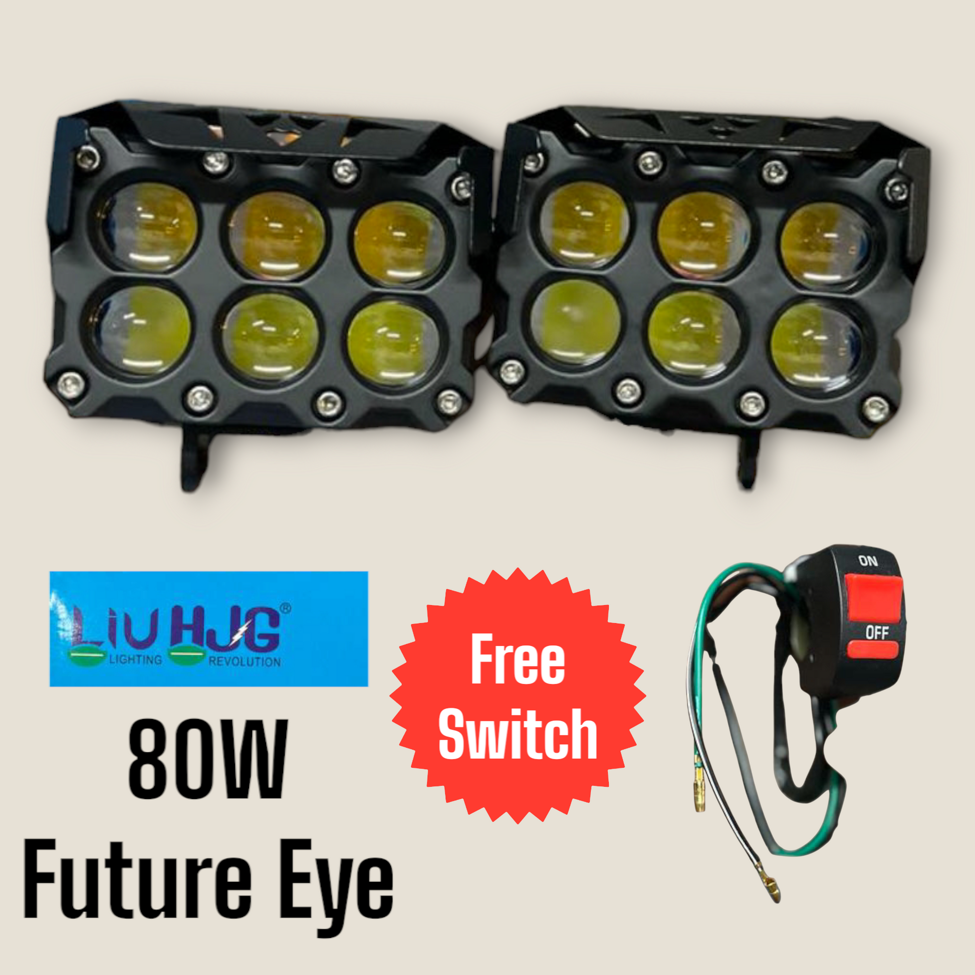 LIU HJG 80W Future EYE 6-Lens LED Fog Lights with Free Switch - Universal Fit for Bikes and Cars (Set of 2)