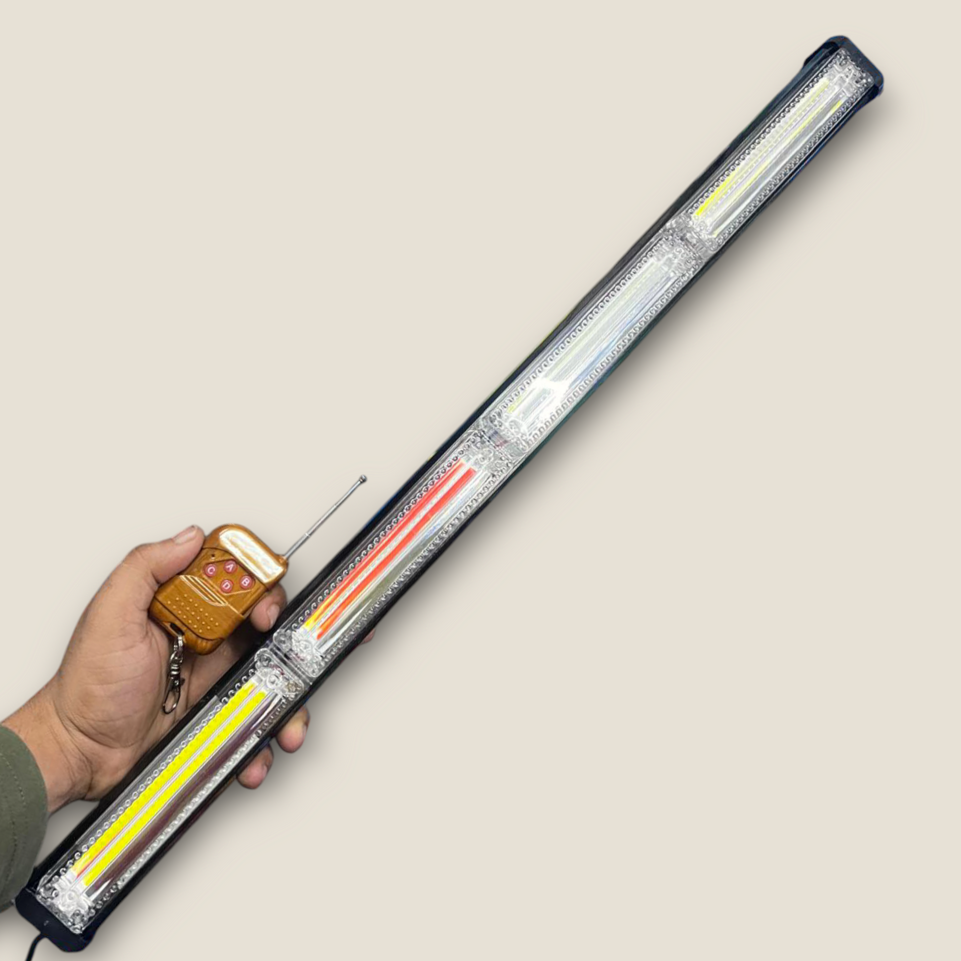 This product comes with a 21-inch long COB LED traffic advisor strobe light bar.