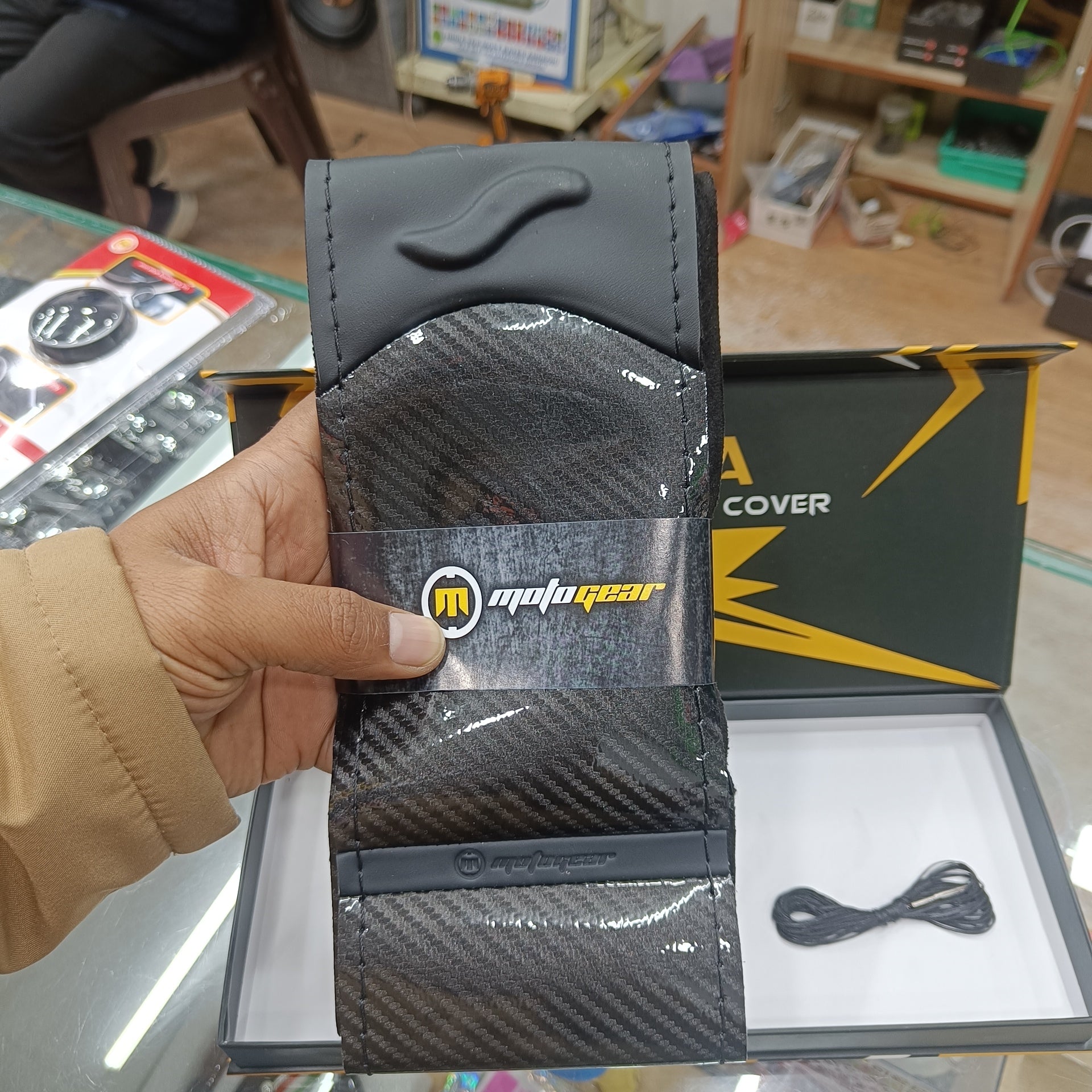 Upgrade your driving experience with the Carbon Steering Wheel Cover Bella X1, designed to combine style, comfort, and control. Featuring a premium carbon-textured leatherette finish, this steering wheel cover adds a sporty and luxurious touch to your car’s interior while ensuring a firm, anti-slip grip.