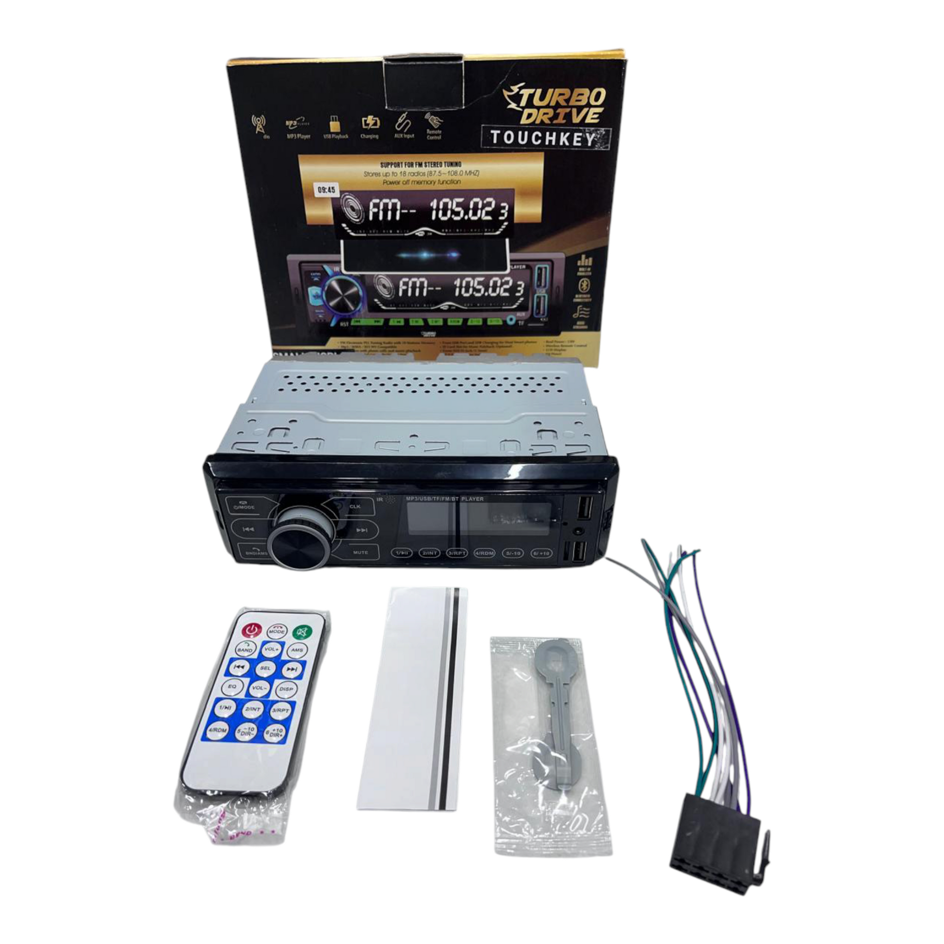 Upgrade your in-car entertainment with the Turbo Drive Touch Key DSP Car Audio Player, a smart and feature-packed music system designed for superior sound quality and convenience.